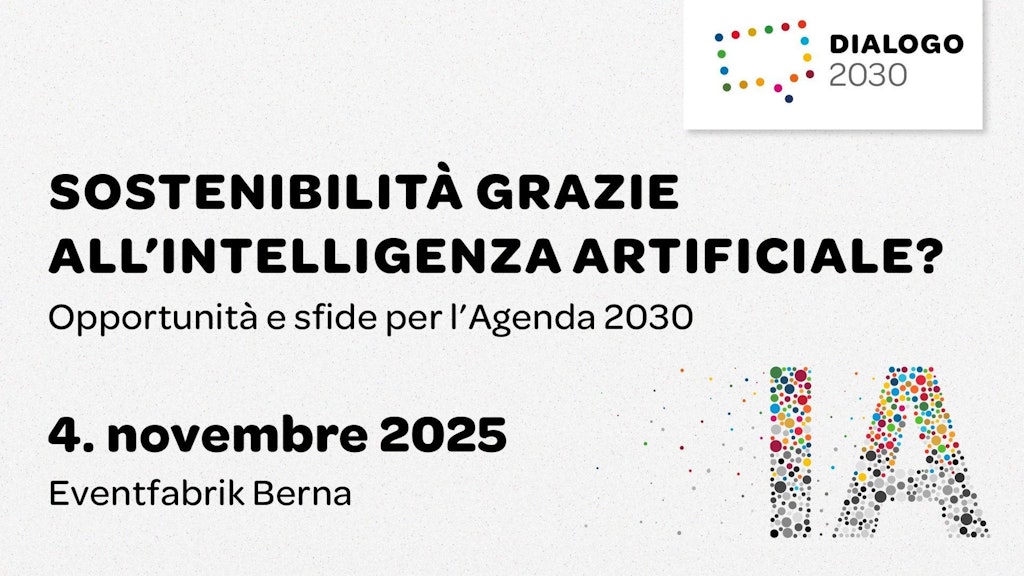 Ci occuperemo di questa domanda durante il Dialogo 2030 per lo sviluppo sostenibile il 4 novembre 2025 all'Eventfabrik di Berna. In un programma variegato e di alto livello, discuteremo di come la Svizzera possa garantire un uso responsabile dell'IA e conciliare la competitività economica con la giustizia sociale e la sostenibilità ecologica.